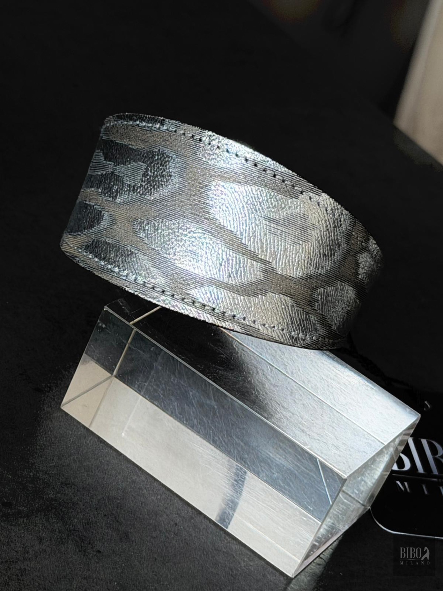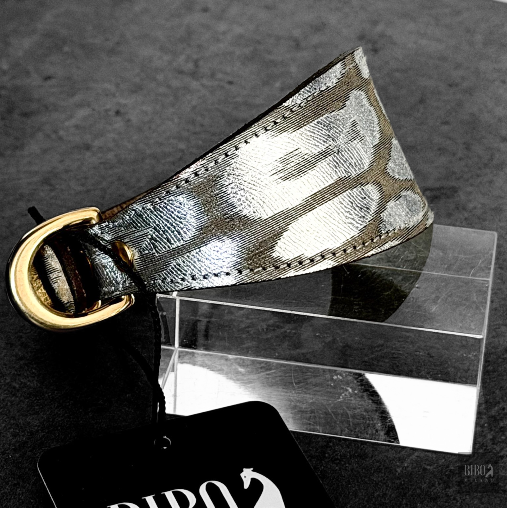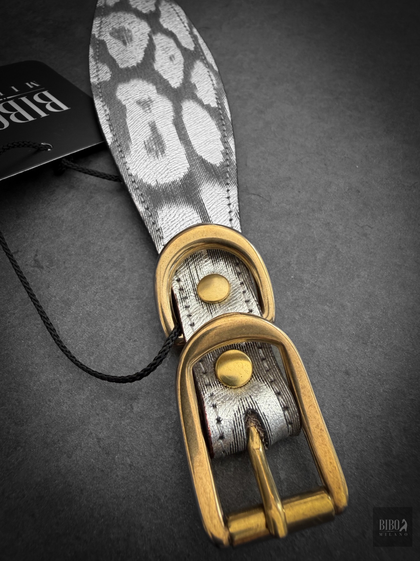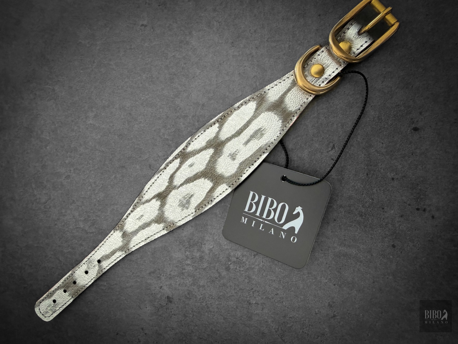 Collare In pelle stampa fantasia argento