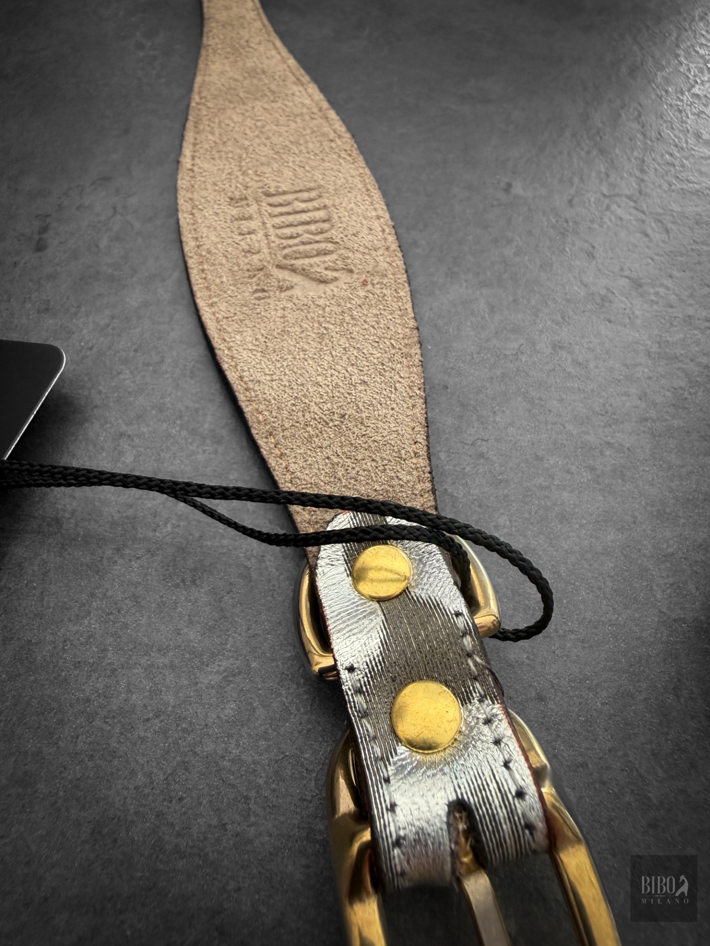 con Fibbia in ottone e con cucitura in tono.