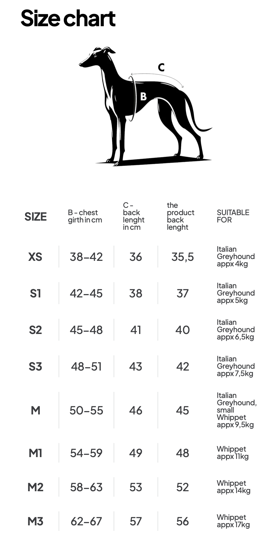 Tailored Fit for Sighthound Curves: We believe that every dog is unique, which is why we designed this Body with the specific curves of Italian Greyhounds and Whippets in mind. The cut is tailored to their body shape, guaranteeing a perfect fit and a distinctive look.