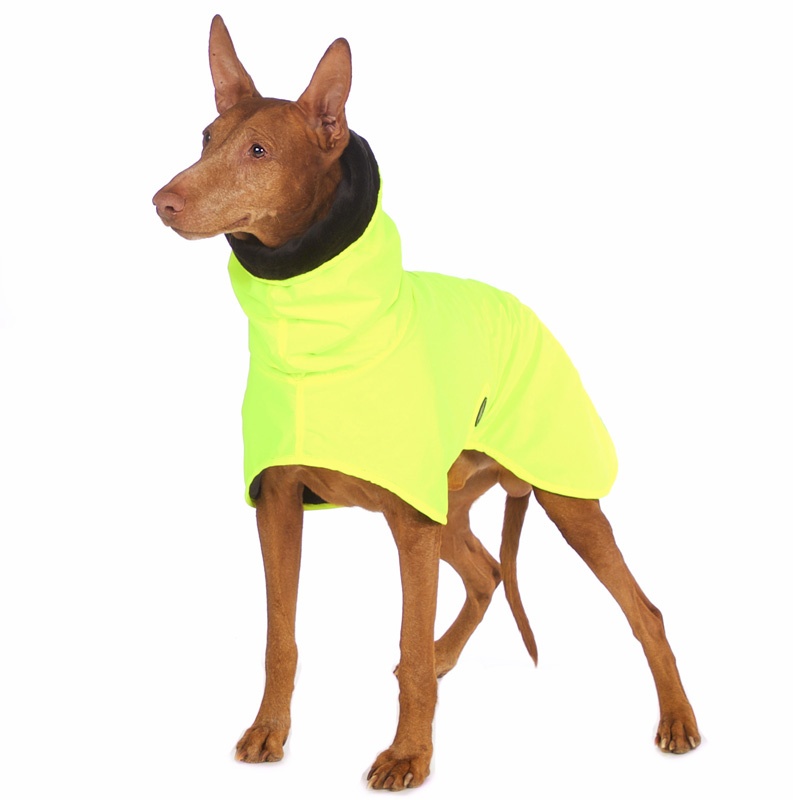 New material version with a proven cut, suitable for cold days of early spring and late autumn. It original and practical shape, long hood with slots for a leash. Lightweight upper material with a membrane lined with fleece with long hair, anddistinctive reflective elements. Velcro fastening under the belly allows for easy dressing and undressing.