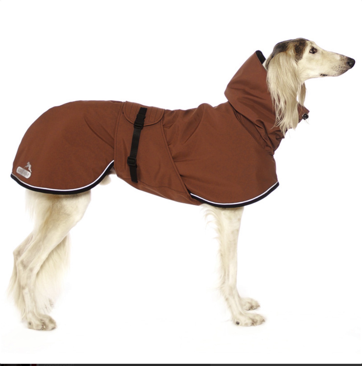 Warm winter jacket with hood in a luxurious design, especially designed for greyhounds. The upper material with membrane is pleasant to the touch. The lining is made of soft long-haired fleece. The internal insulation ensures high thermal comfort. Attractive colors.