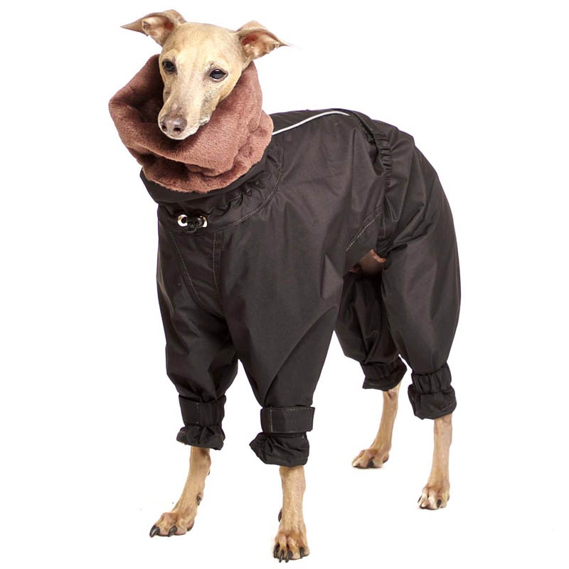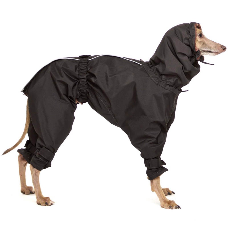 Le gambe sono dotate di fasce per evitare l'intrappolamento dei piedi nella tuta. Gli elementi riflettenti proteggono il tuo cane al buio.